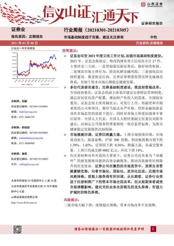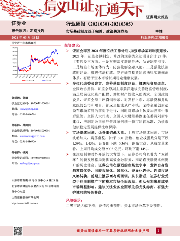 【山西证券】【20210308】证券行业周报:市场基础制度趋于完善,建议关注券商-9页