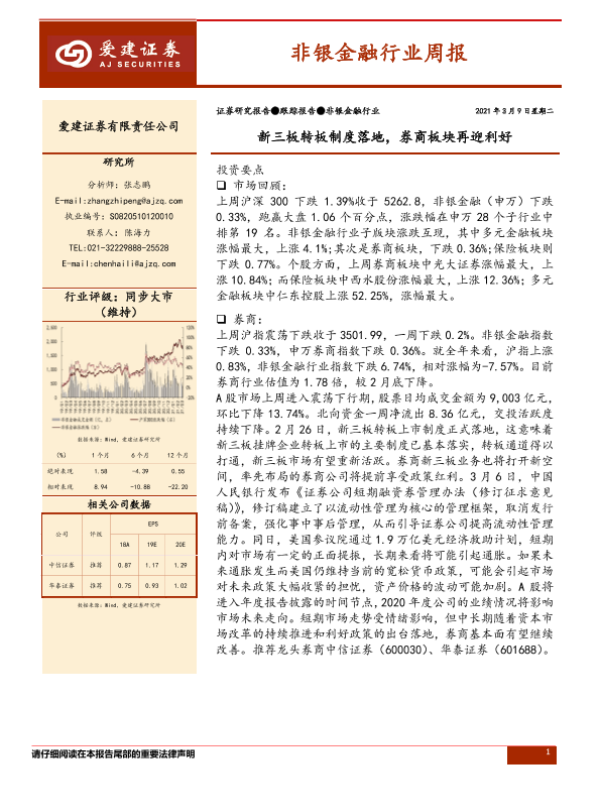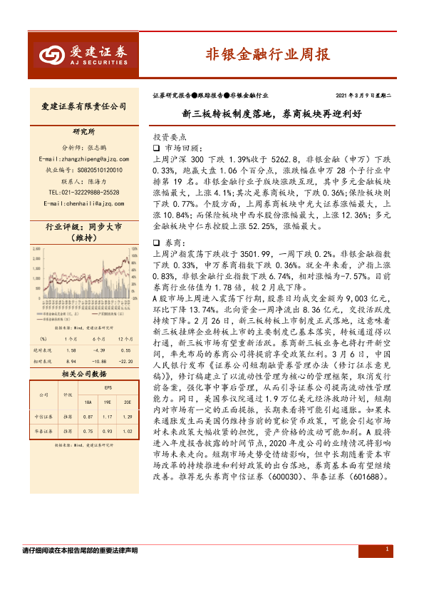 【爱建证券】【20210309】非银金融行业周报:新三板转板制度落地,券商板块再迎利好-11页