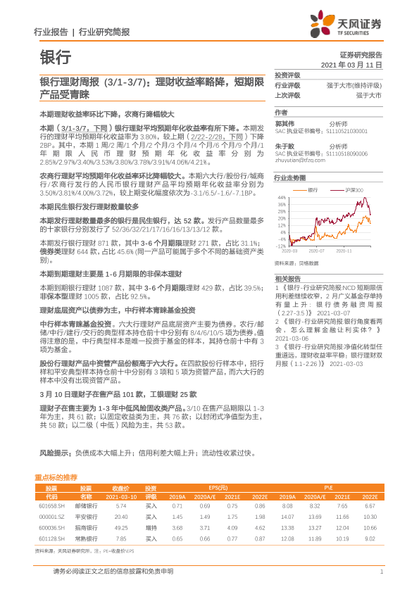 【天风证券】【20210311】理财收益率略降,短期限产品受青睐-17页