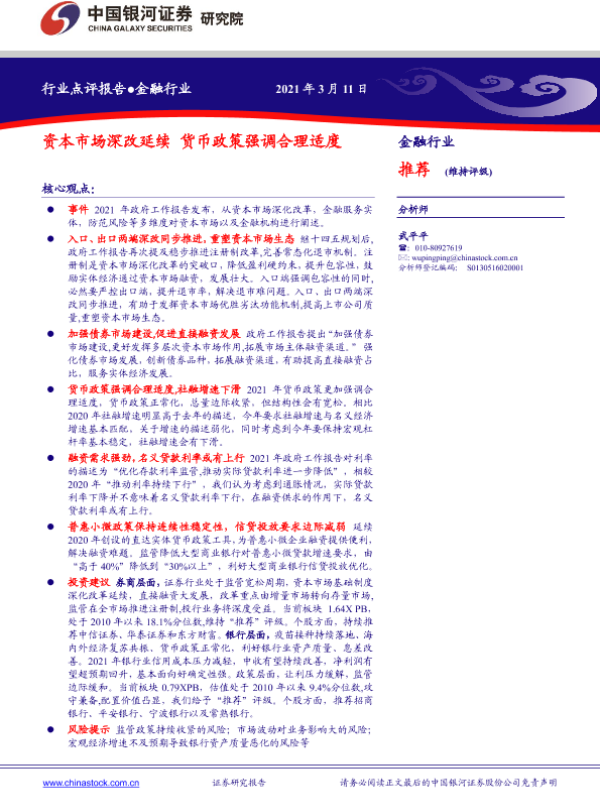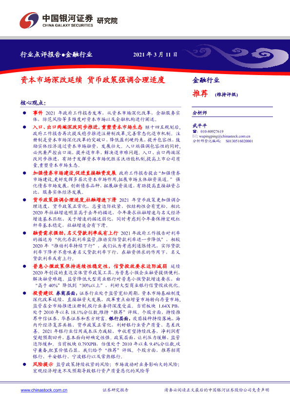 【银河证券】【20210311】金融行业:资本市场深改延续 货币政策强调合理适度-9页
