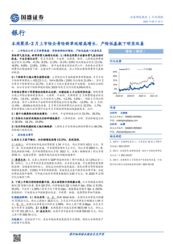 【国盛证券】【20210314】本周聚焦-2月上市险企寿险新单延续高增长,产险低基数下明显改善-16页