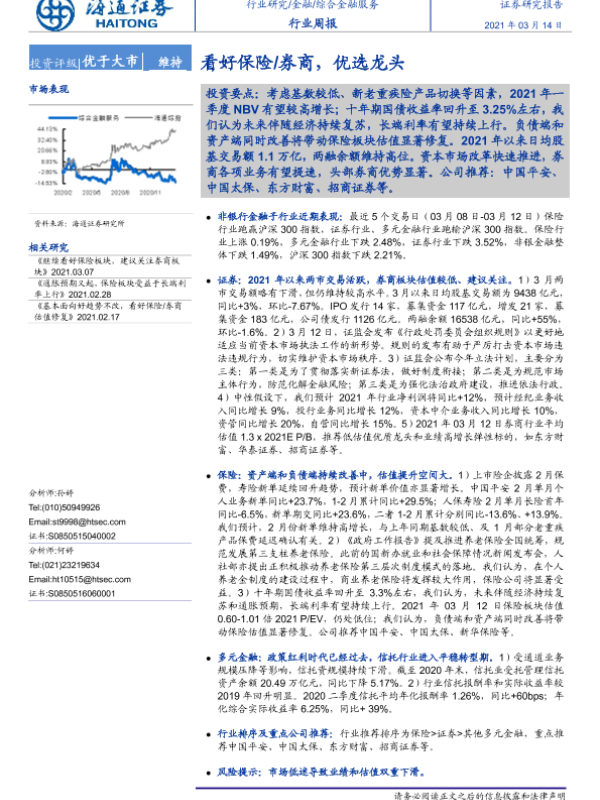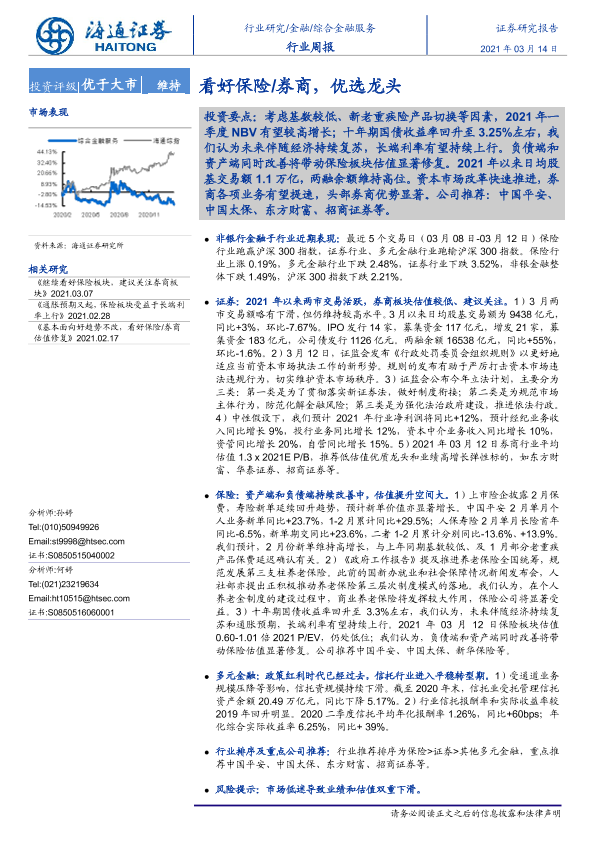 【海通证券】【20210314】综合金融服务行业周报:看好保险 券商,优选龙头-9页