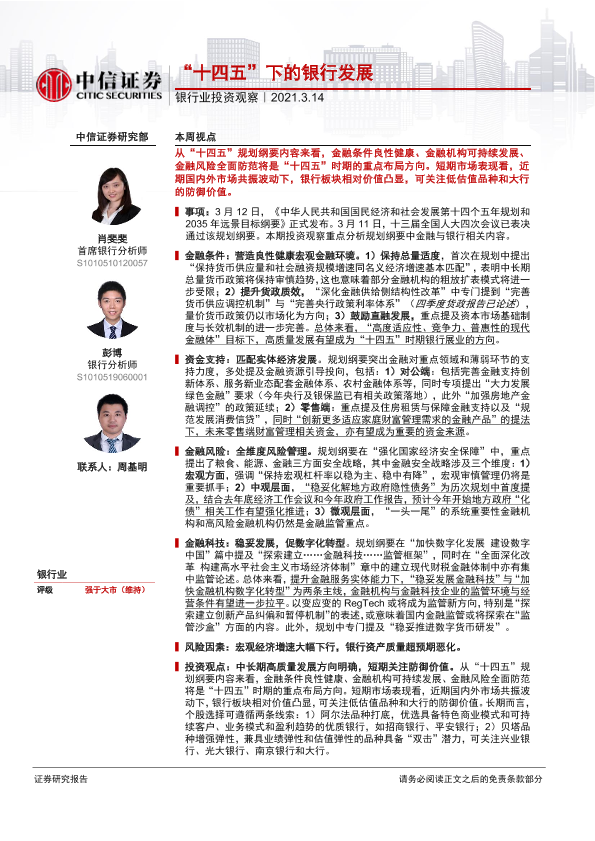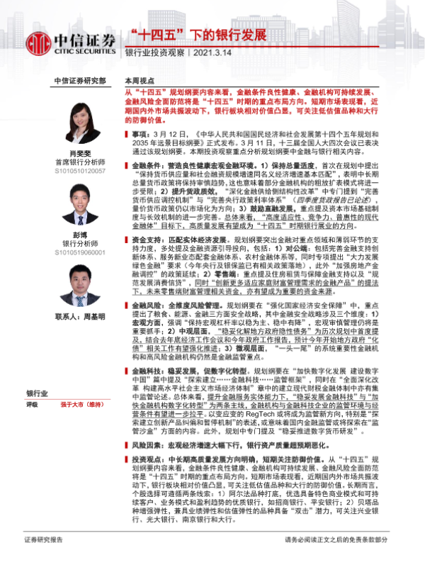 【中信证券】【20210314】银行业投资观察:“十四五”下的银行发展-9页