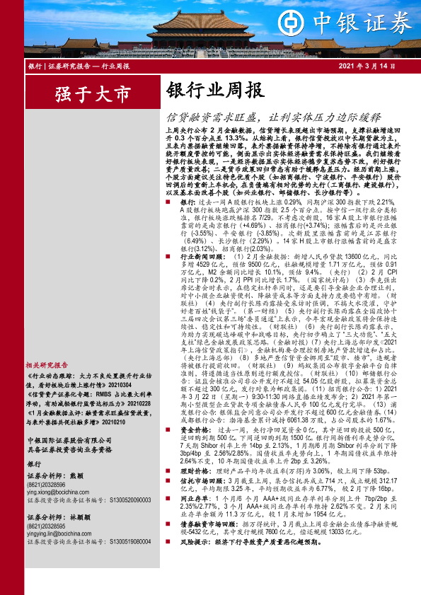 【中银证券】【20210314】信贷融资需求旺盛,让利实体压力边际缓释-11页