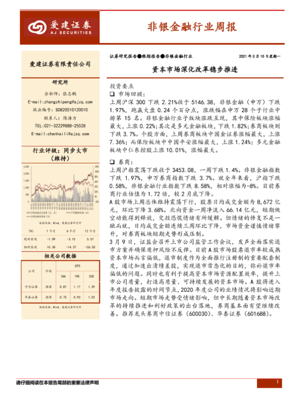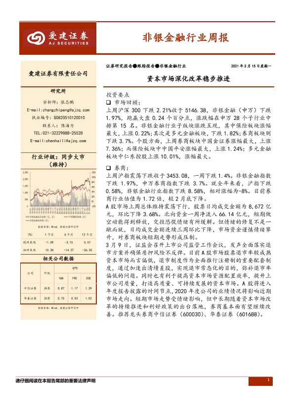 【爱建证券】【20210315】非银金融行业周报:资本市场深化改革稳步推进-11页