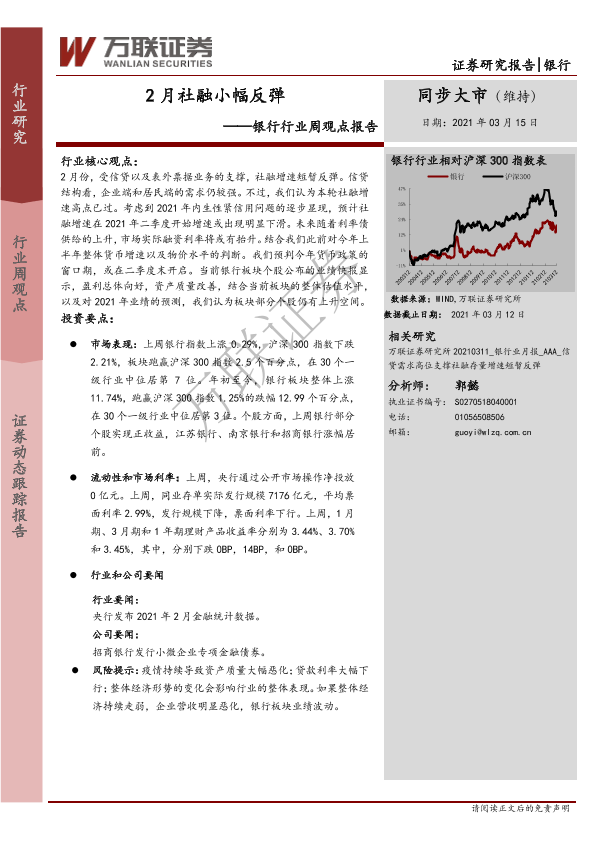 市场表现 理财产品 社融增速 货币政策 银行行业