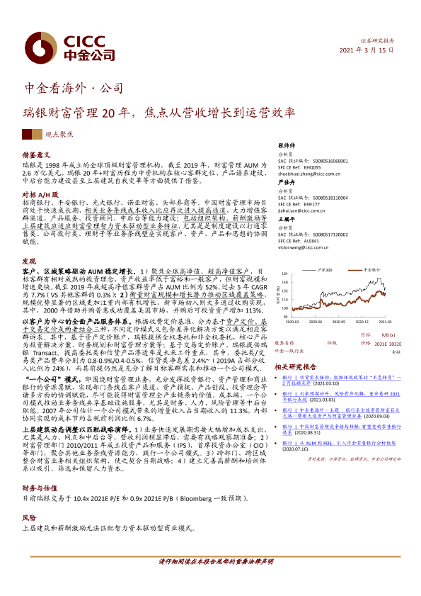 【中金公司】【20210315】瑞银财富管理20年,焦点从营收增长到运营效率-48页