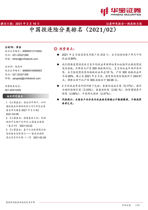 【华宝证券】【20210316】中国投连险分类排名-21页