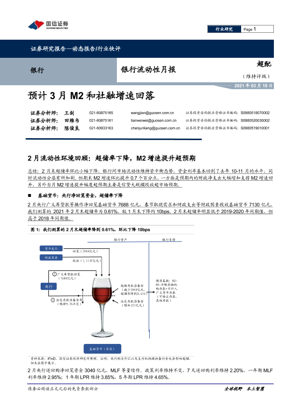 【国信证券】【20210319】银行流动性月报:预计3月M2和社融增速回落-9页