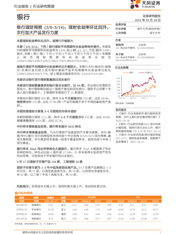 【天风证券】【20210318】银行理财周报:理财收益率环比回升,农行加大产品发行力度-17页
