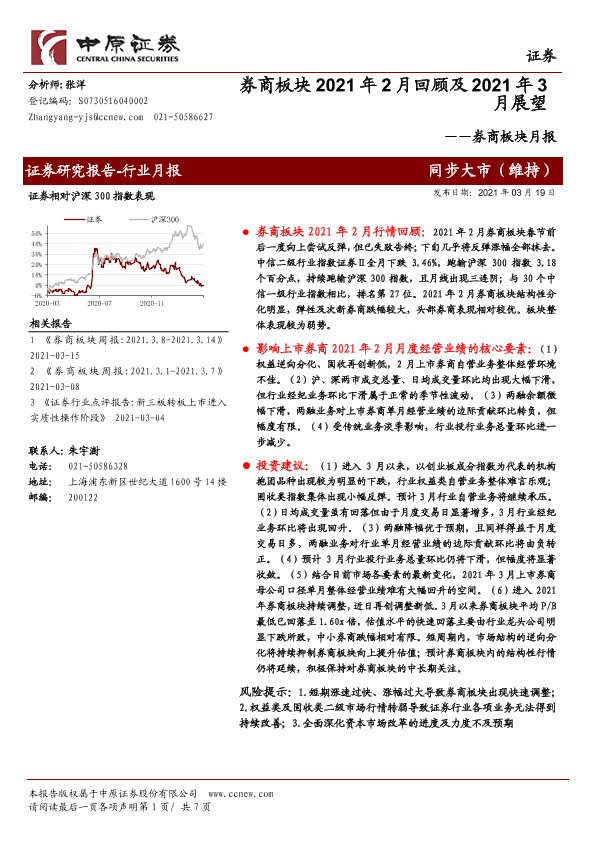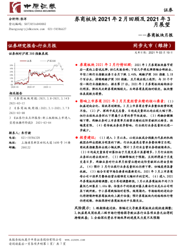 【中原证券】【20210319】券商板块2021年2月回顾及2021年3月展望-7页