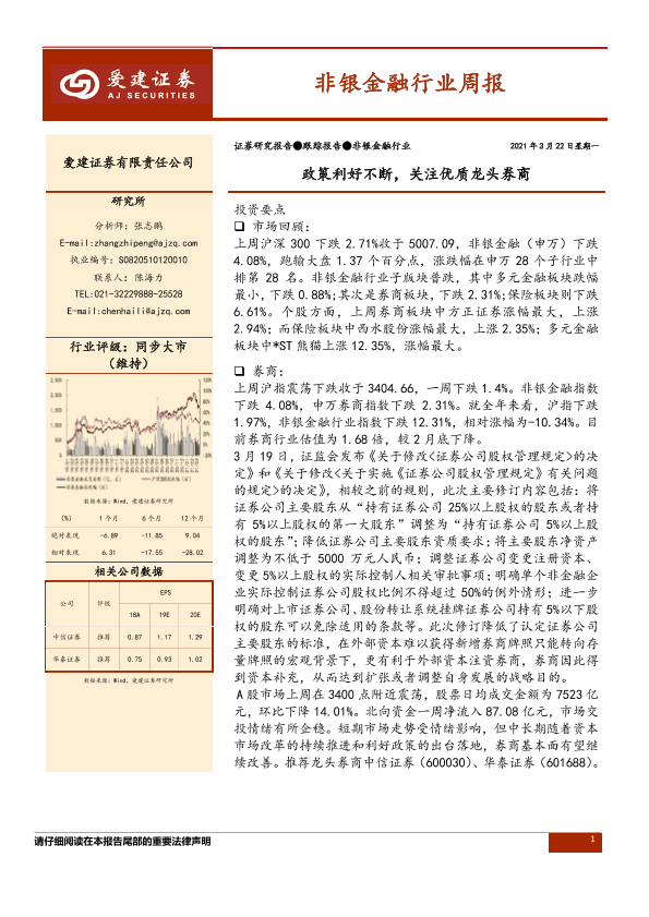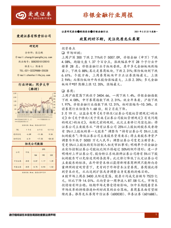 【爱建证券】【20210322】非银金融周报:政策利好不断,关注优质龙头券商-11页