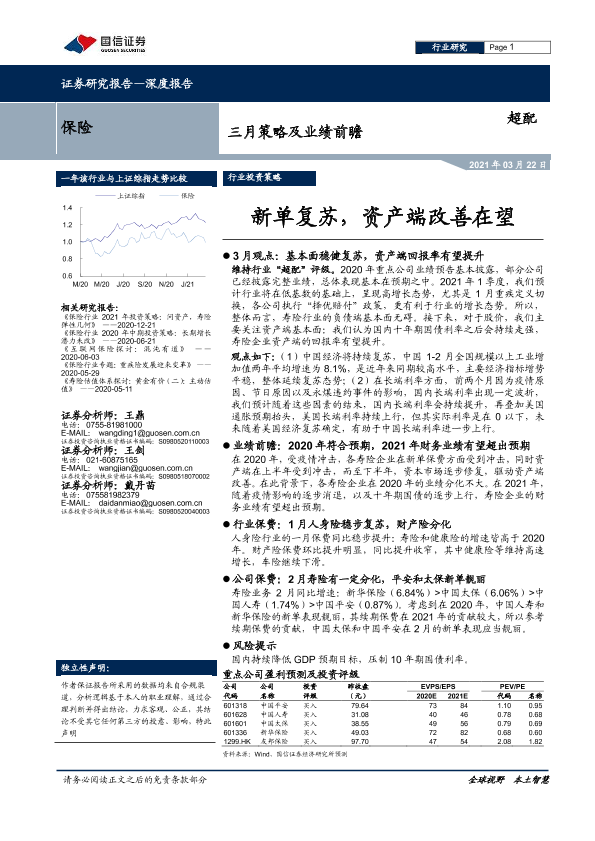 【国信证券】【20210322】保险三月策略及业绩前瞻:新单复苏,资产端改善在望-8页