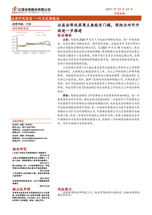 【红塔证券】【20210322】证监会降低券商主要股东门槛,保险业对外开放进一步推进-9页