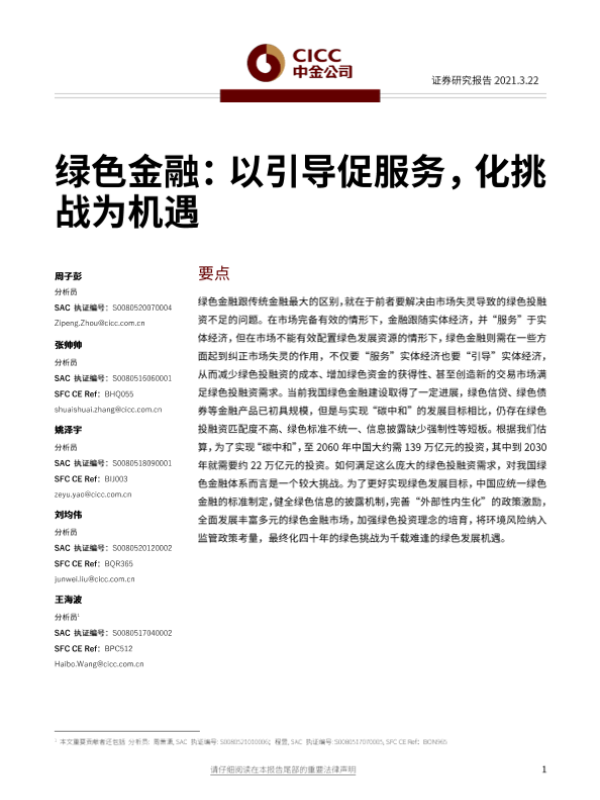 【中金公司】【20210322】绿色金融:以引导促服务,化挑战为机遇-26页