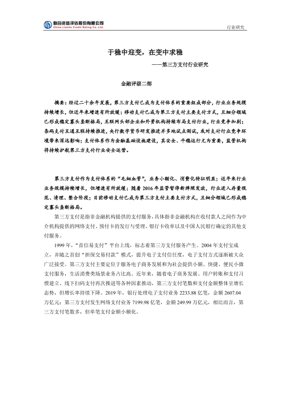 【联合资信】【20210325】第三方支付行业研究:于稳中迎变,在变中求稳-6页