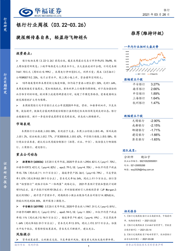 【华福证券】【20210326】银行行业周报:捷报频传春自来,轻盈待飞柳梢头-13页