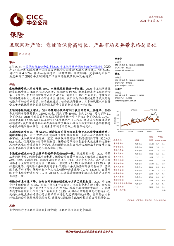 【中金公司】【20210327】互联网财产险:意健险保费高增长,产品布局差异带来格局变化-6页