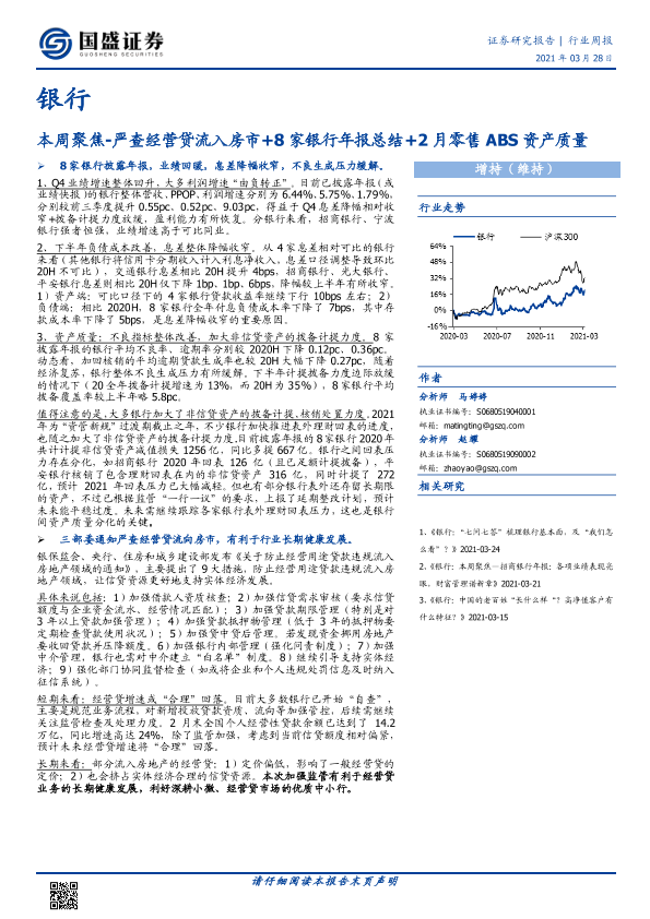 【国盛证券】【20210328】银行行业周报:本周聚焦-严查经营贷流入房市+8家银行年报总结+2月零售ABS资产质量-18页