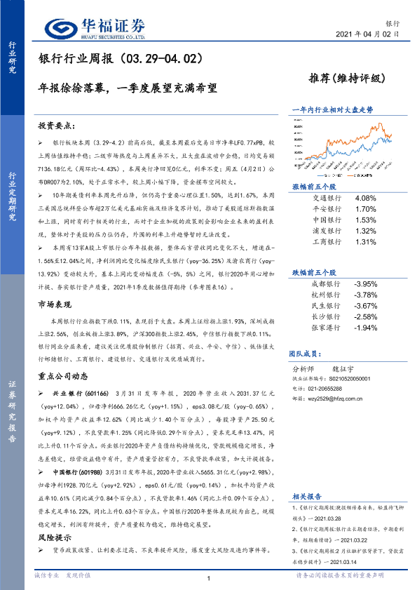 【华福证券】【20210402】银行行业周报:年报徐徐落幕,一季度展望充满希望-15页