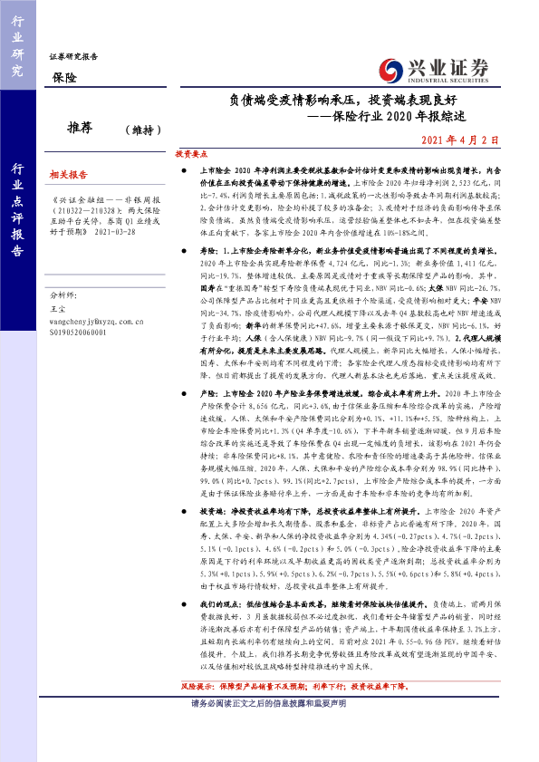 【兴业证券】【20210402】负债端受疫情影响承压,投资端表现良好 ——保险行业2020年报综述-11页