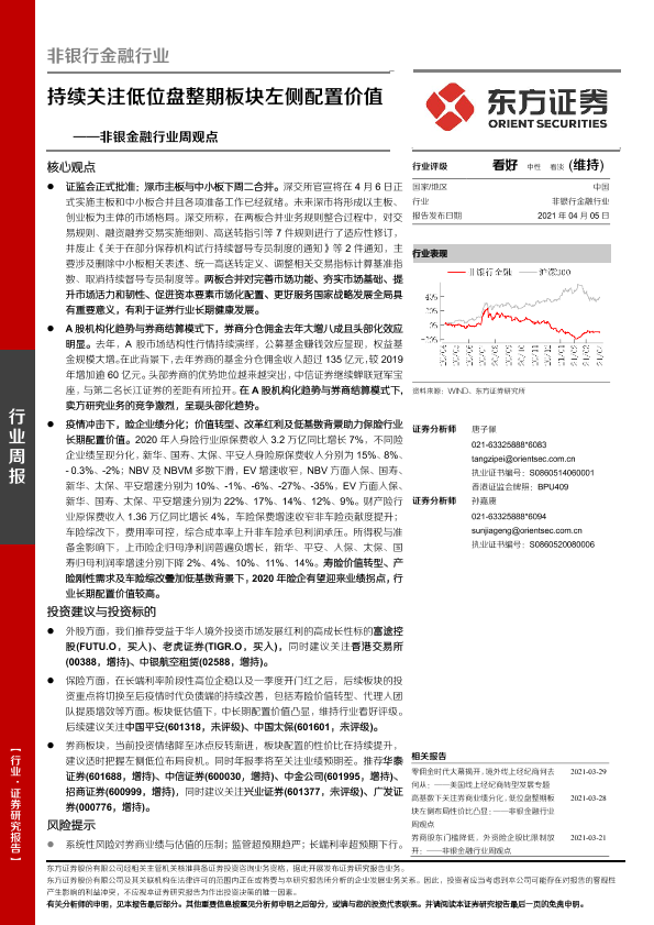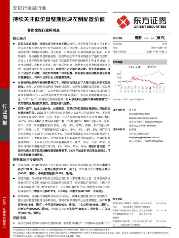 【东方证券】【20210405】非银金融行业周观点:持续关注低位盘整期板块左侧配置价值-14页