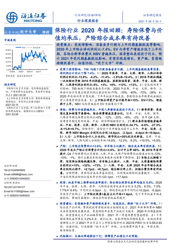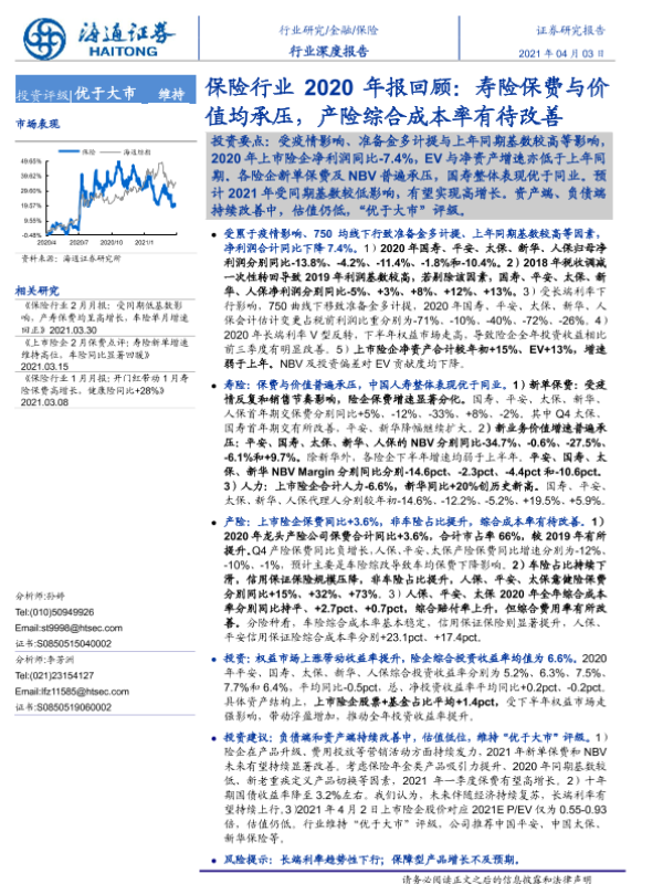【海通证券】【20210403】保险行业2020年报回顾:寿险保费与价值均承压,产险综合成本率有待改善-29页