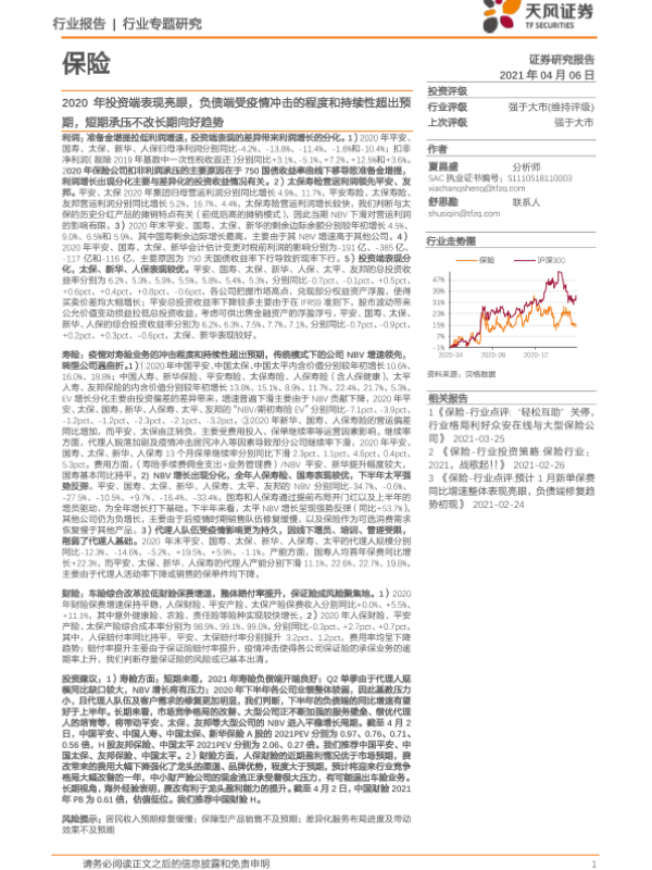 【天风证券】【20210406】2020年投资端表现亮眼,负债端受疫情冲击的程度和持续性超出预期,短期承压不改长期向好趋势-22页