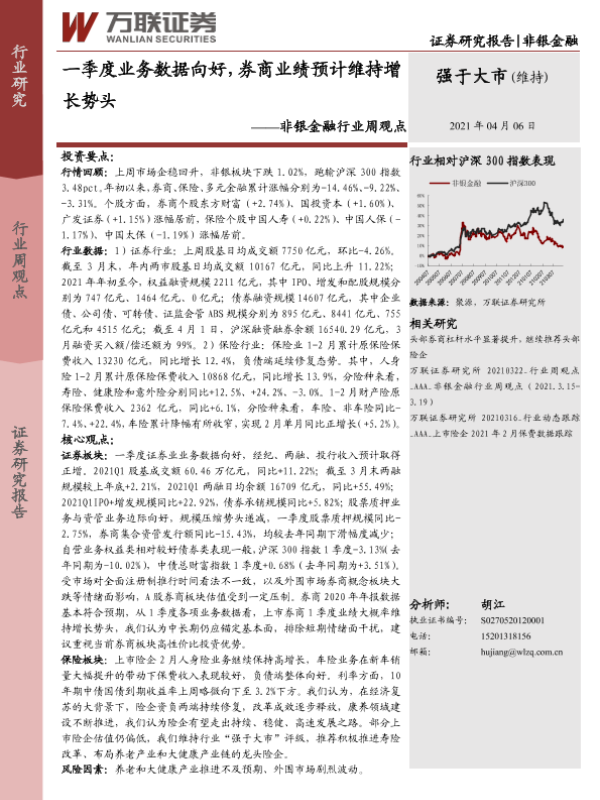 【万联证券】【20210406】非银金融行业周观点:一季度业务数据向好,券商业绩预计维持增长势头-9页