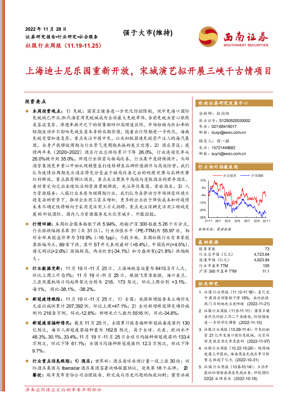 【西南证券】【20221128】社服行业周报:上海迪士尼乐园重新开放,宋城演艺拟开展三峡千古情项目-22页