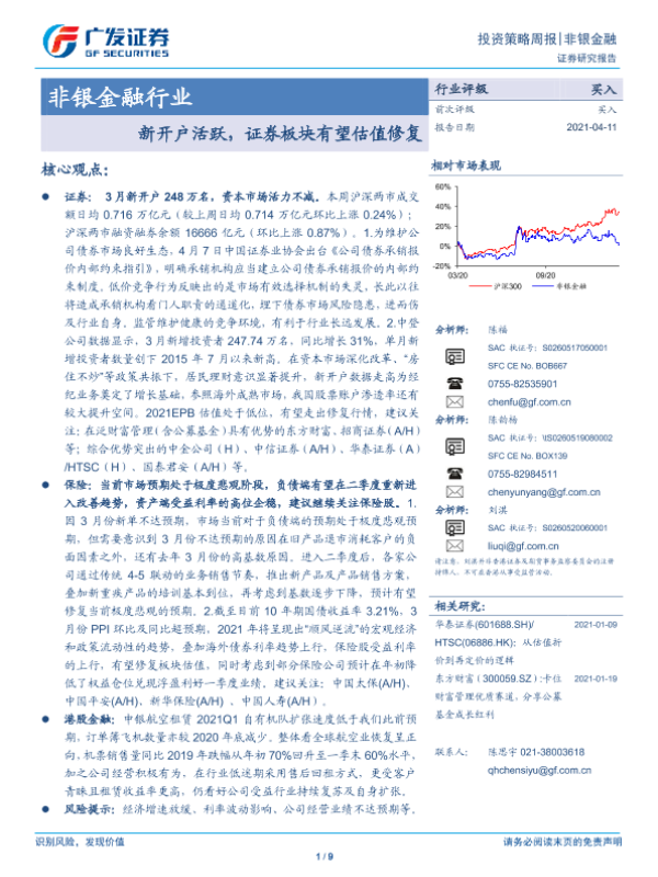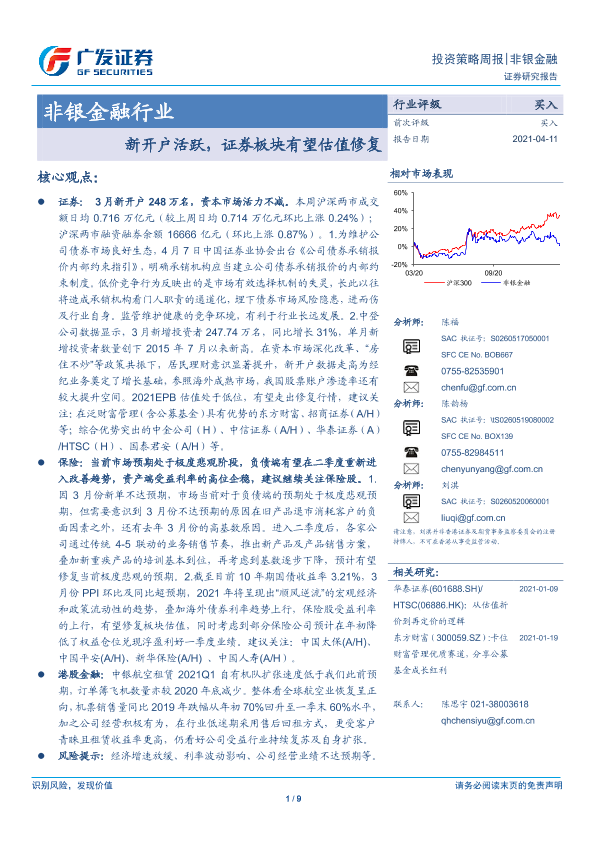 【广发证券】【20210411】非银金融投资策略周报:新开户活跃,证券板块有望估值修复-9页