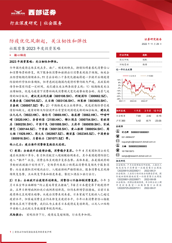 【西部证券】【20221129】社服零售行业2023年度投资策略:防疫优化风渐起,关注韧性和弹性-25页