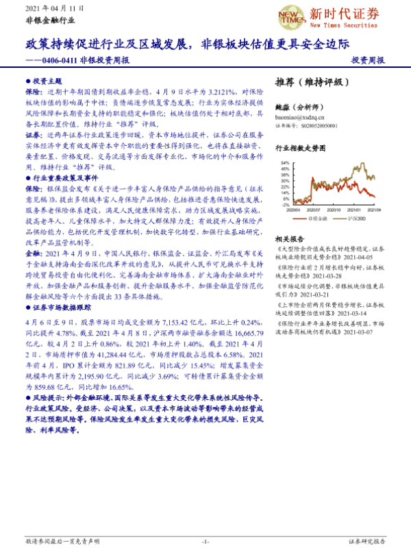 【新时代证券】【20210411】新时代证券非银投资周报:政策持续促进行业及区域发展,非银板块估值更具安全边际-12页