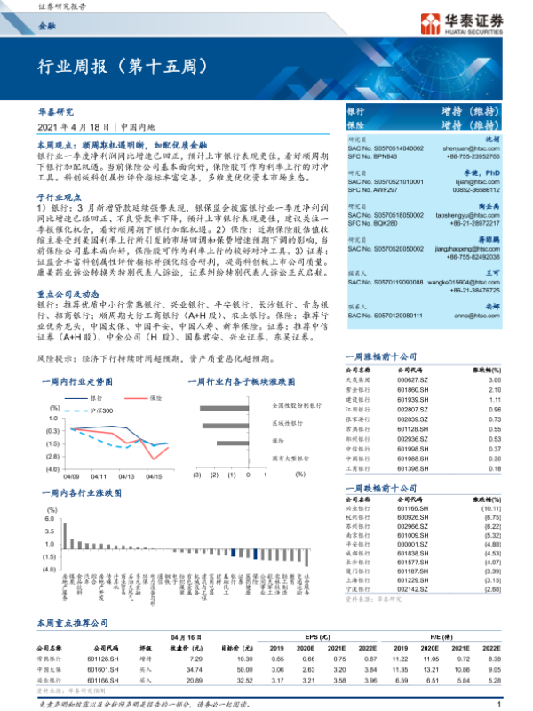 【华泰证券】【20210418】金融行业周报(第十五周)-26页