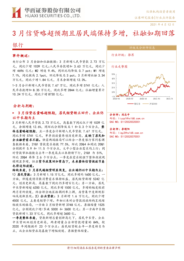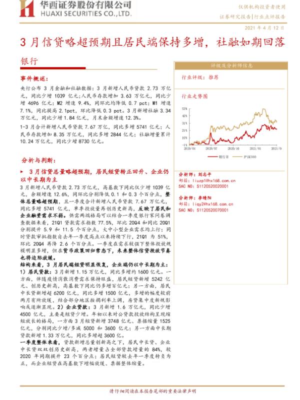 【华西证券】【20210412】3月信贷略超预期且居民端保持多增,社融如期回落-4页