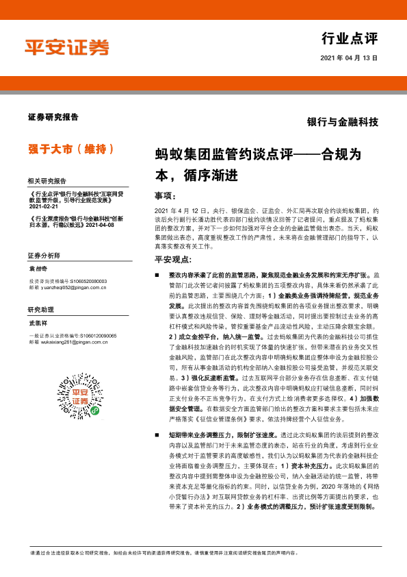 【平安证券】【20210413】银行与金融科技:蚂蚁集团监管约谈点评-3页