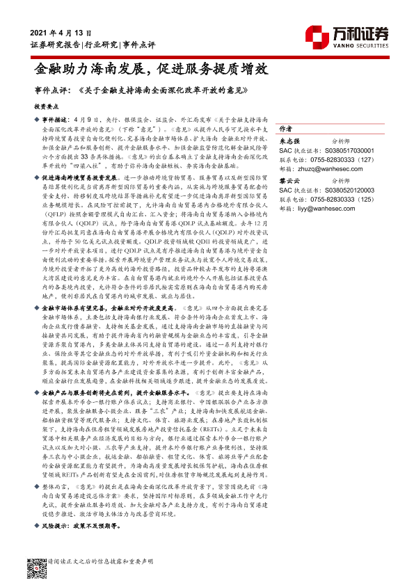 【万和证券】【20210413】金融助力海南发展,促进服务提质增效-5页