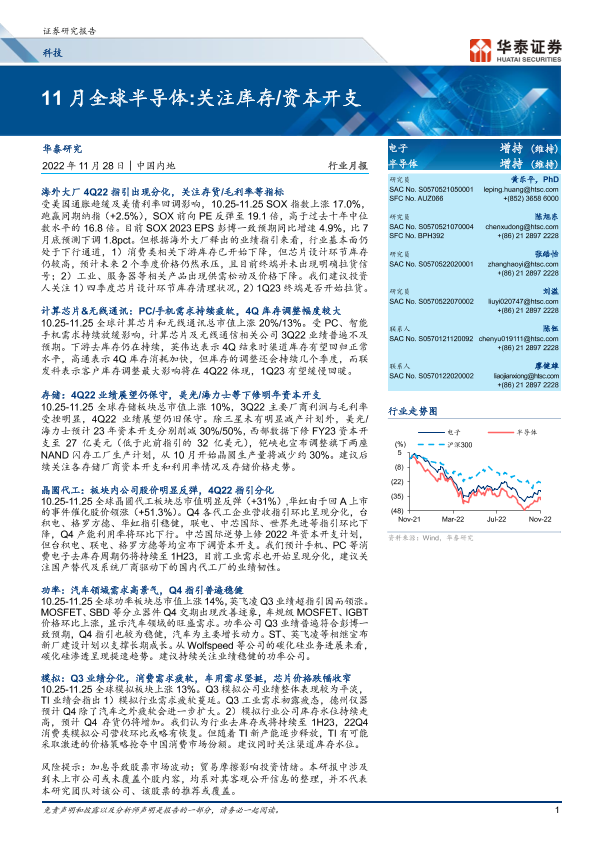 【华泰证券】【20221128】科技行业月报:11月全球半导体,关注库存资本开支-40页