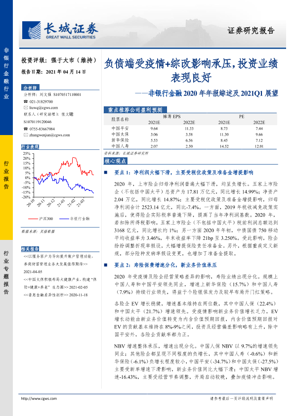 【长城证券】【20210414】非银行金融2020年年报综述及2021Q1展望-28页