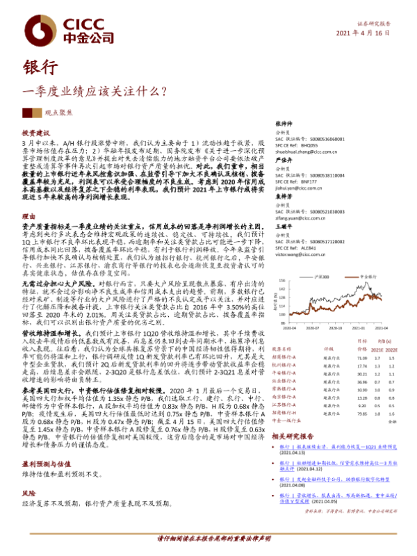 业绩预测 估值修复 信用成本 资产质量 银行股分析