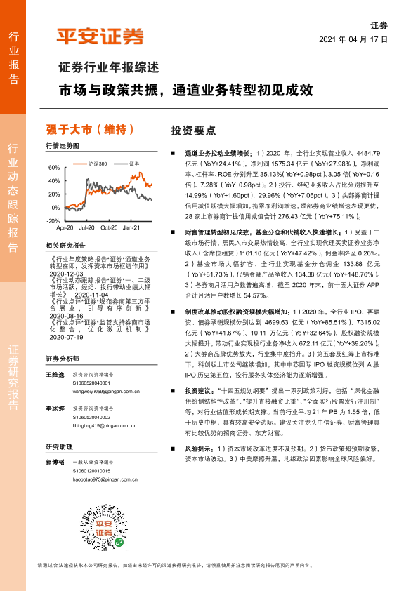【平安证券】【20210417】证券行业年报综述:市场与政策共振,通道业务转型初见成效-17页