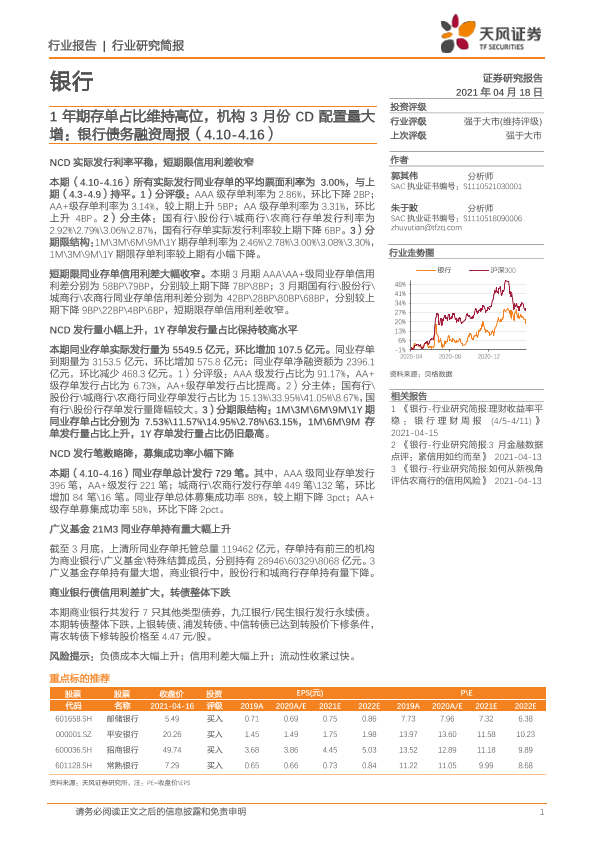 【天风证券】【20210418】1年期存单占比维持高位,机构3月份CD配置量大增-14页