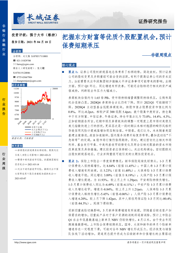 【长城证券】【20210418】非银周观点:把握东方财富等优质个股配置机会,预计保费短期承压-36页