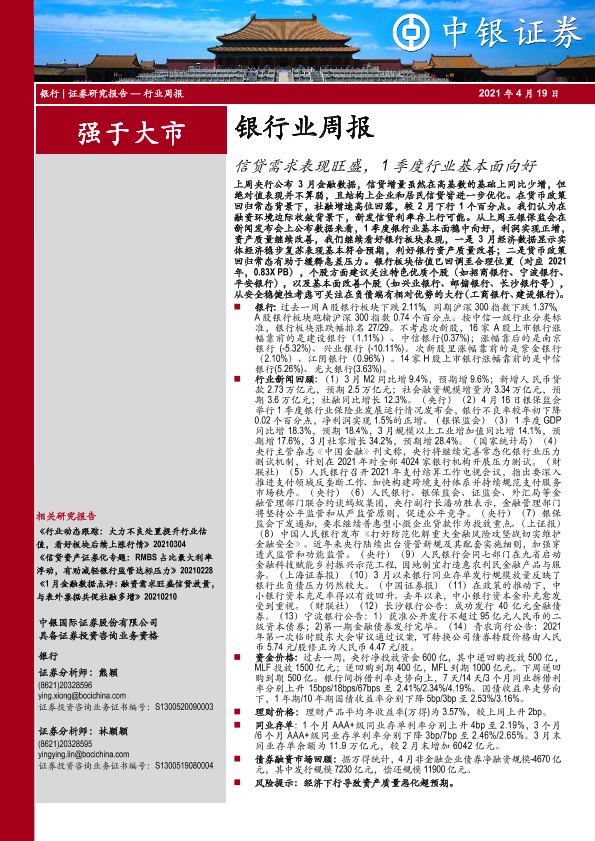 【中银证券】【20210419】信贷需求表现旺盛,1季度行业基本面向好-12页