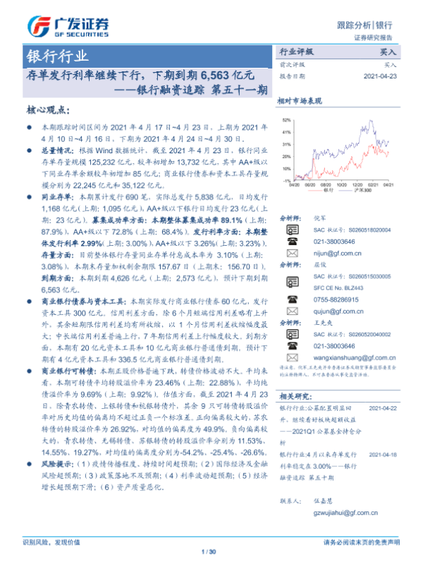 【广发证券】【20210423】存单发行利率继续下行,下期到期6,563亿元——银行融资追踪第五十一期-30页