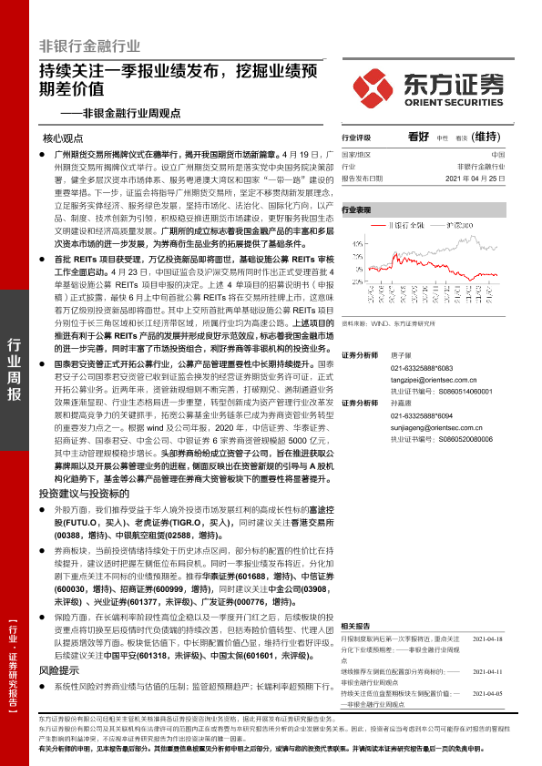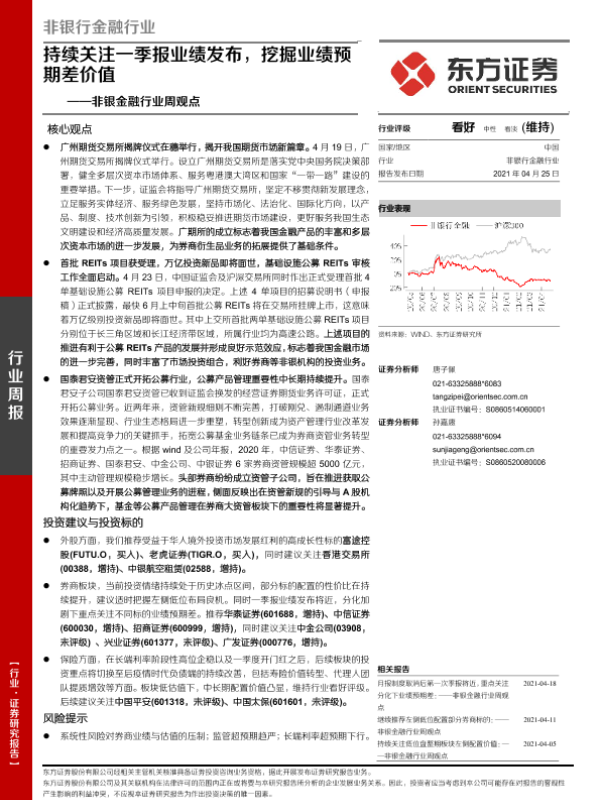 【东方证券】【20210425】非银金融行业周观点:持续关注一季报业绩发布,挖掘业绩预期差价值-13页