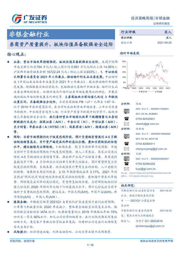 【广发证券】【20210425】非银金融行业:券商资产质量提升,板块估值具备较强安全边际-10页