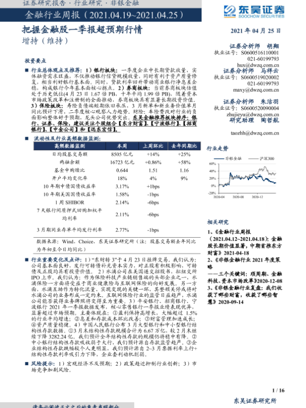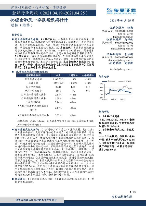 【东吴证券】【20210425】金融行业周报:把握金融股一季报超预期行情-16页