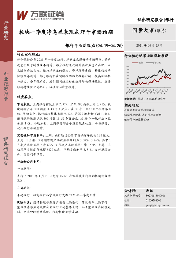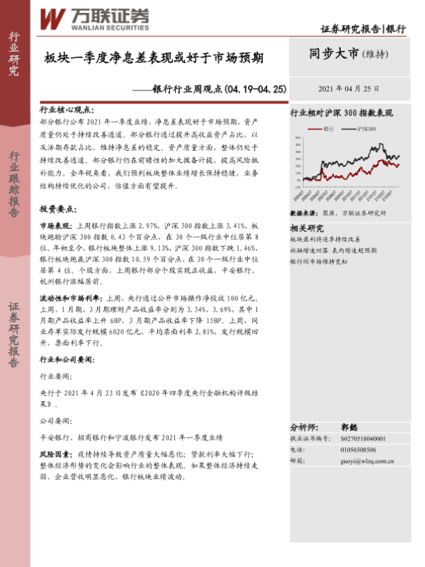 【万联证券】【20210425】板块一季度净息差表现或好于市场预期-7页