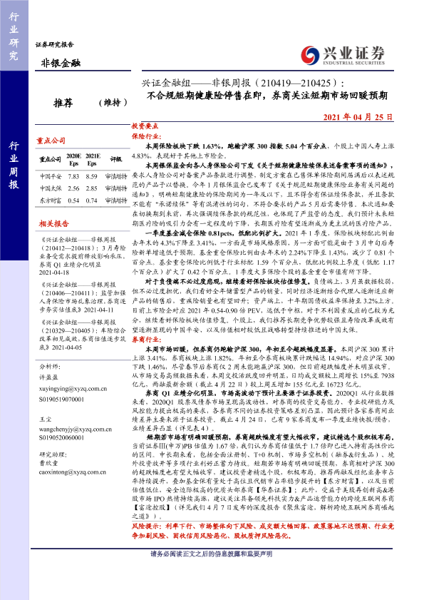 【兴业证券】【20210425】不合规短期健康险停售在即,券商关注短期市场回暖预期-11页